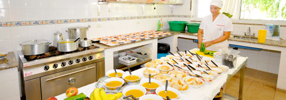 Distribuido en mesas de cuatro personas, para lograr así un ambiente familiar y acogedor, fomentando la comunicación de los residentes. En la cocina el menú es elaborado en función de las necesidades nutricionales de cada residente y siempre bajo supervisación médica, con las más estrictas normas de higiene. La impecable cocina está equipada con modernos electrodomésticos y personal altamente especializado para preparar las dietas requeridas.